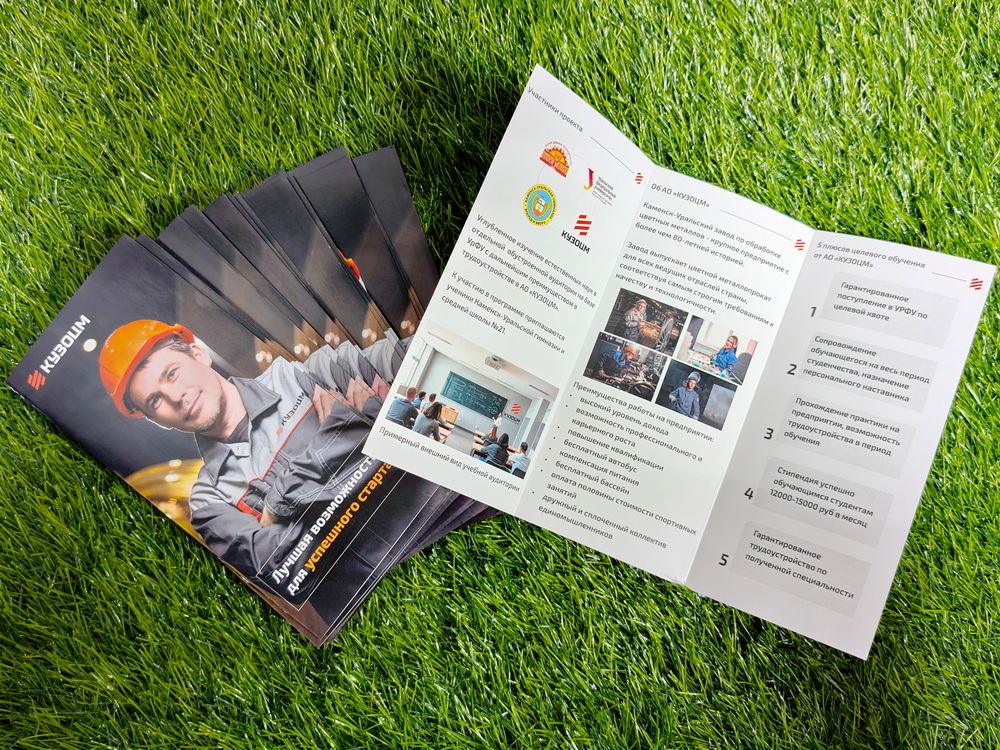 Его можно сравнить с лендингом, только в печатном виде. Здесь ёмко и лаконично размещается важная информация о предприятии. А также программа мероприятий, памятки, история организации и доступные в ней вакансии.