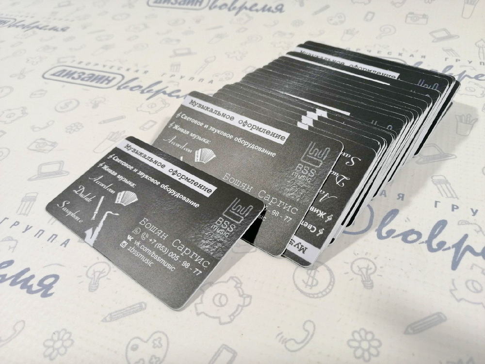 Премиум-вариант – визитки из дизайнерской бумаги. Они изготавливаются при помощи УФ-печати. Этот способ печати с наиболее стойкой и точной цветопередачей. Видов дизайнерской бумаги множество: различные цвета, текстуры. Есть бумага с soft touch-покрытием. Возможна отделка лаком.