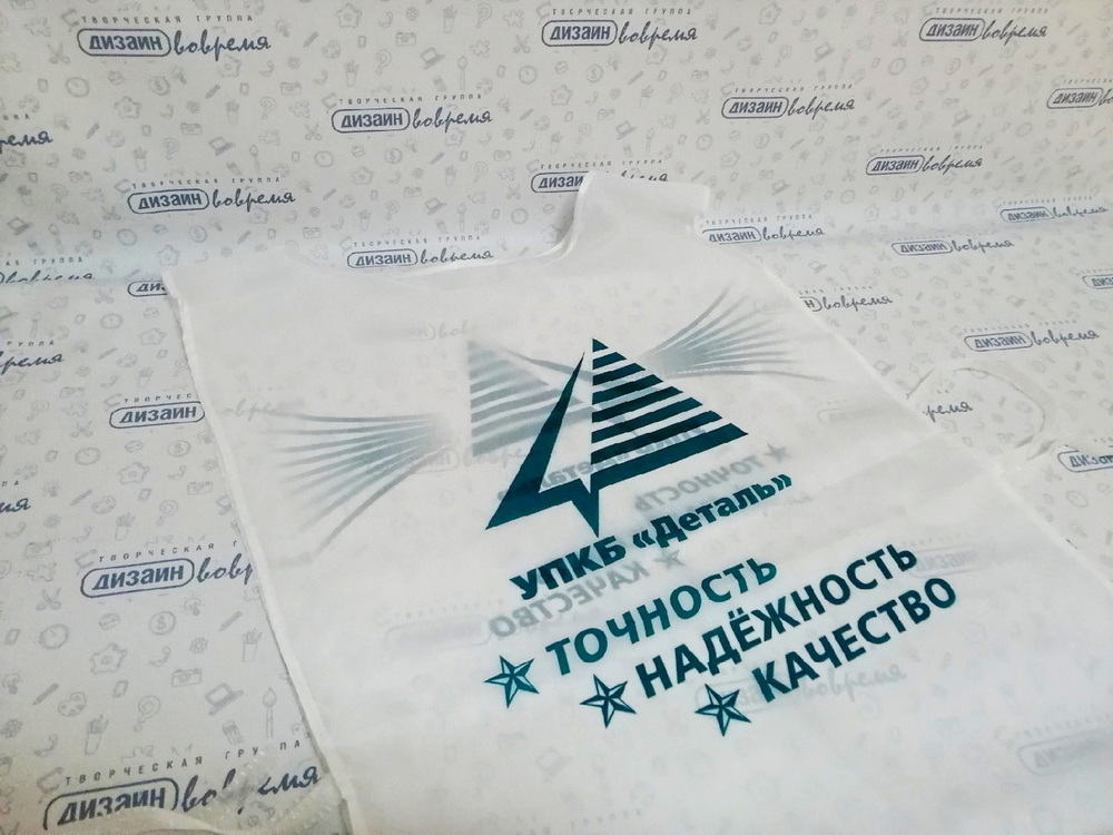 Нанесение логотипа на фартук или накидку осуществляется посредством прямой печати на ткани или термопереноса пленки. Способ зависит от цветности ткани и вида материала.