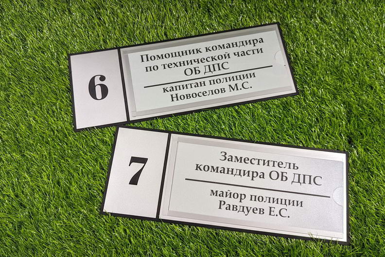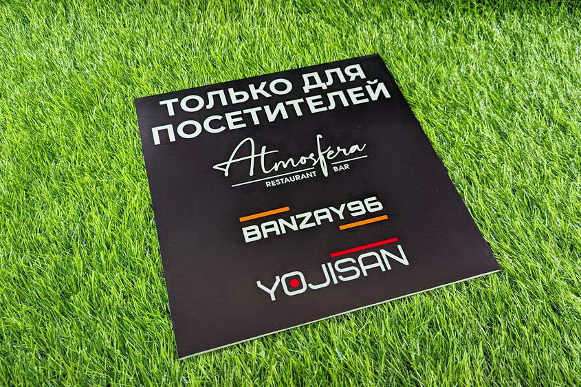 Пластиковые таблички с УФ-печатью. Этот вид табличек хорош тем, что на них можно напечатать абсолютно любое полноцветное изображение, включая фотографию. В этом случае происходит полная запечатка фона, и можно легко добиться нужного цвета. Это особенно важно для организаций и франшиз, работающих в соответствии с брендбуком, в котором прописаны фирменные цвета, которых нужно чётко придерживаться.