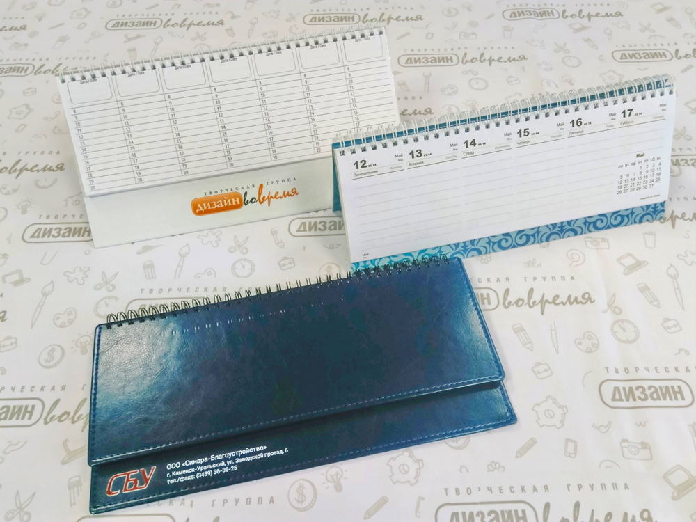 Изготавливаем датированные и недатированные персонализированные ежедневники, еженедельники и планинги тиражом от одного экземпляра. Нанесение производится путём УФ-печати, блинтового тиснения и фольгирования.