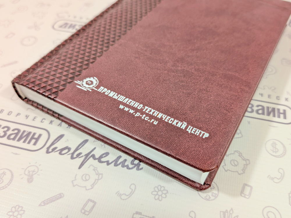 Блинтовое тиснение осуществляется с помощью предварительно нагретого клише, которое вдавливаясь в поверхность ежедневника оставляет бесцветный оттиск.