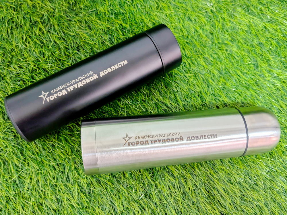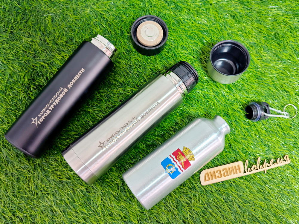 Изготавливаем фляжки и термосы с нанесением тиражом от одного экземпляра. Также возможно нанесение на крышке и чехле изделия.