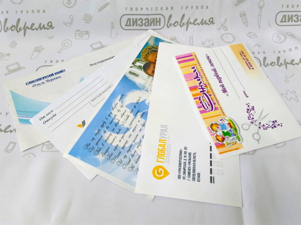 Мы осуществляем цифровую полноцветную печать на конвертах, различных размеров от евро до А4: