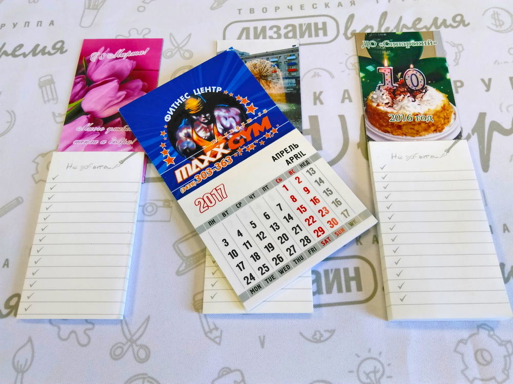 Также есть возможность изготовления бумажных блоков для записи или мини-календариков с магнитной задней поверхностью.