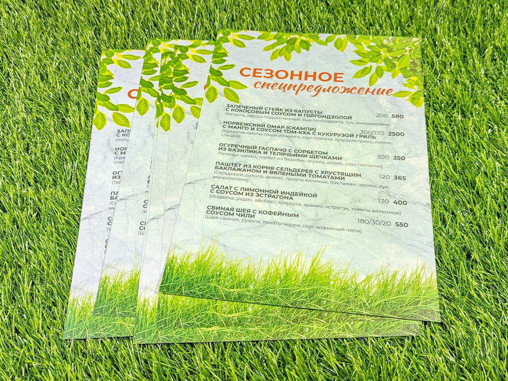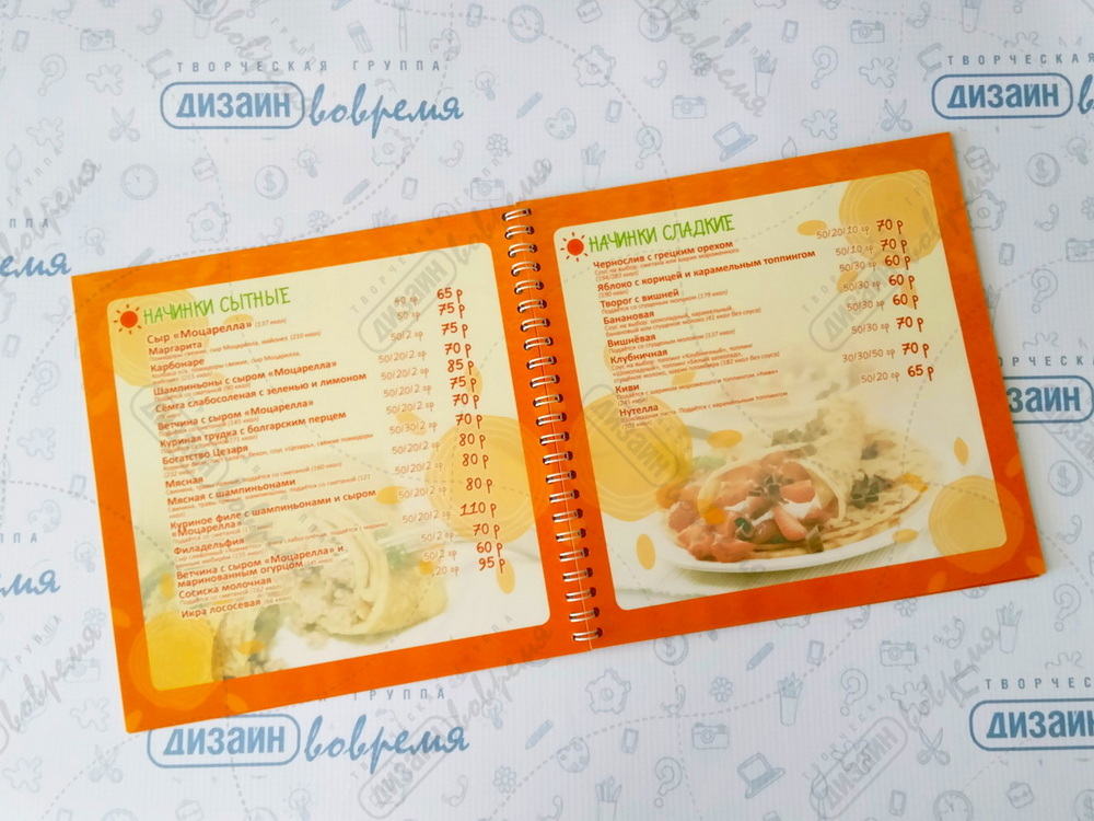 Напечатать и сброшюровать меню можно от 1 экземпляра.