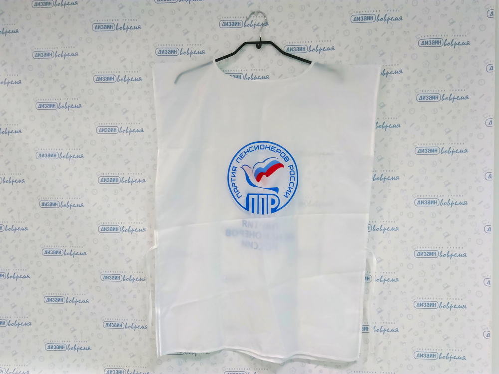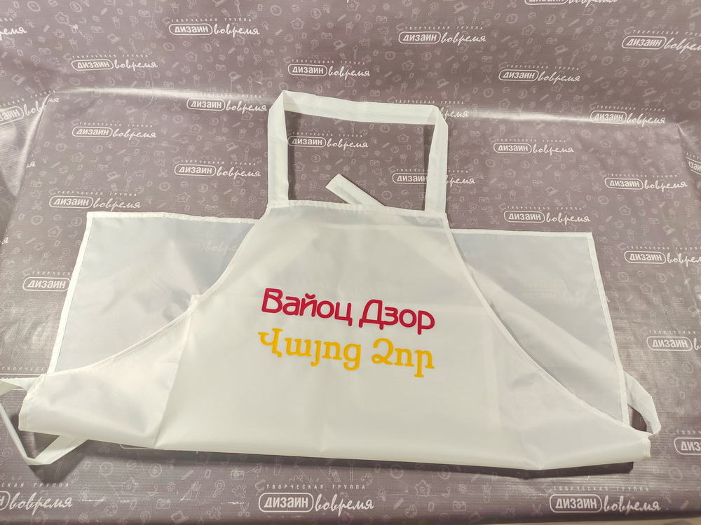 Нанесение логотипа на фартук или накидку осуществляется посредством прямой печати на ткани или термопереноса пленки. Способ зависит от цветности ткани и вида материала.