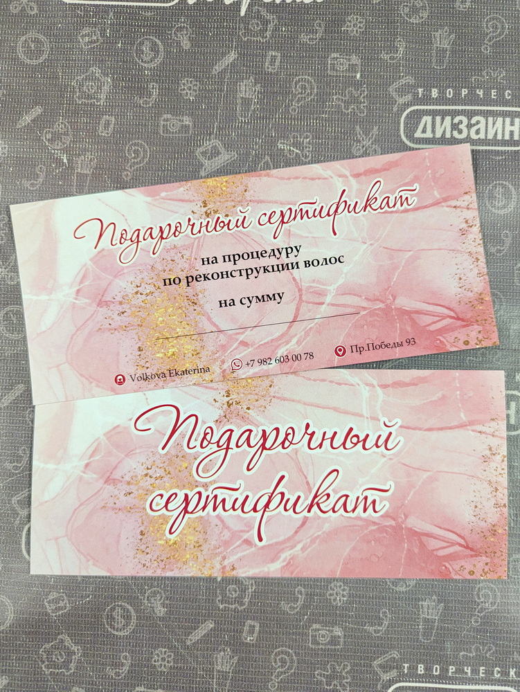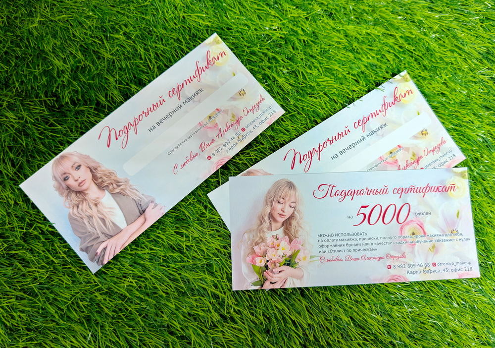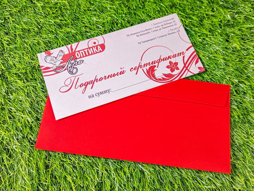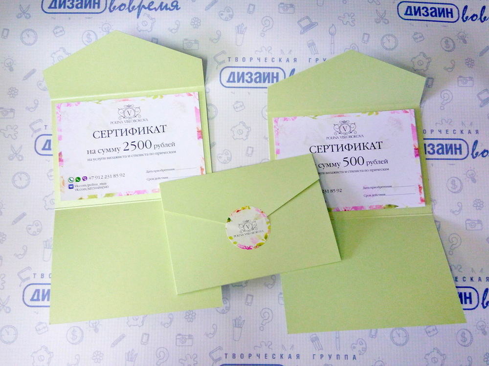 Изготавливаем подарочные сертификаты тиражом от одного экземпляра. Наши специалисты помогут подобрать подходящий именно вам вариант изготовления сертификатов, а также разработают их дизайн с учетом ваших пожеланий и с соблюдением фирменного стиля компании.