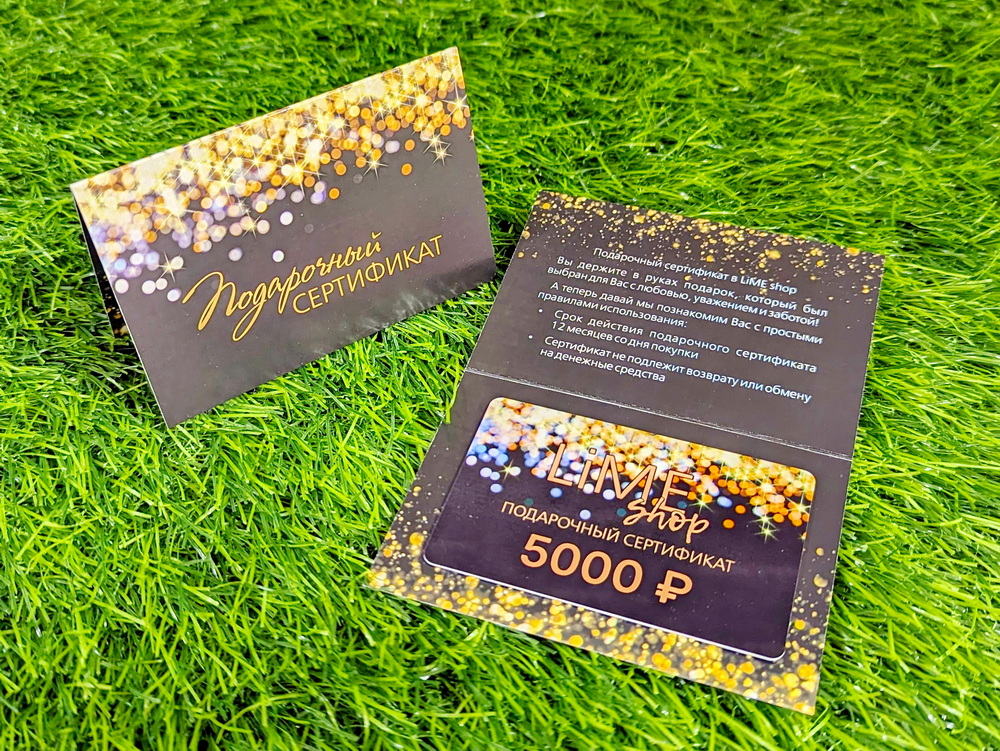 Сертификаты, которые продают на постоянной основе, как правило, изготавливают в виде бумажного конверта или открытки с вложенной в нее пластиковой карточкой, размером 86х54 миллиметров. Такие сертификаты обычно имеют свою нумерацию или штрих-код.