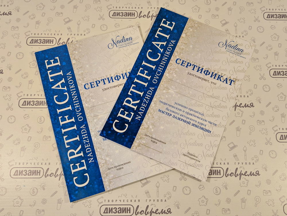 Сертификаты для особых случаев или клиентов могут быть выполнены из дизайнерской бумаги с УФ-печатью и отделкой лаком.