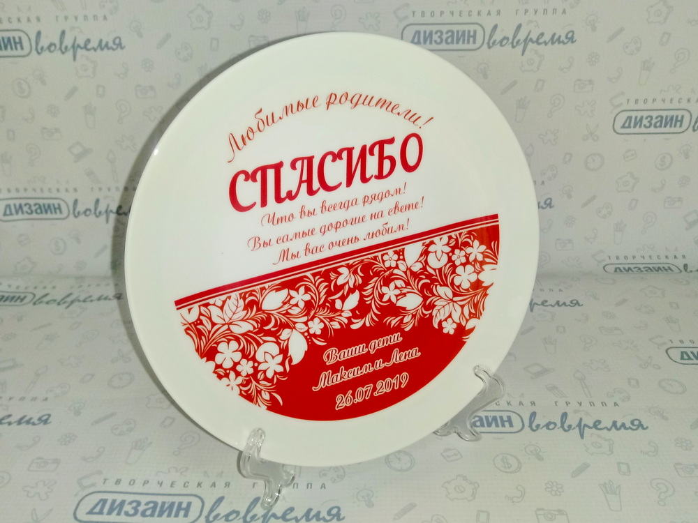 Мы изготавливаем тарелки с полноцветной сублимационной печатью тиражом от одного экземпляра. Нанести можно абсолютно любое изображение: логотип компании, текстовое поздравление, узор и даже полноценную фотографию. Выбор только за вами.