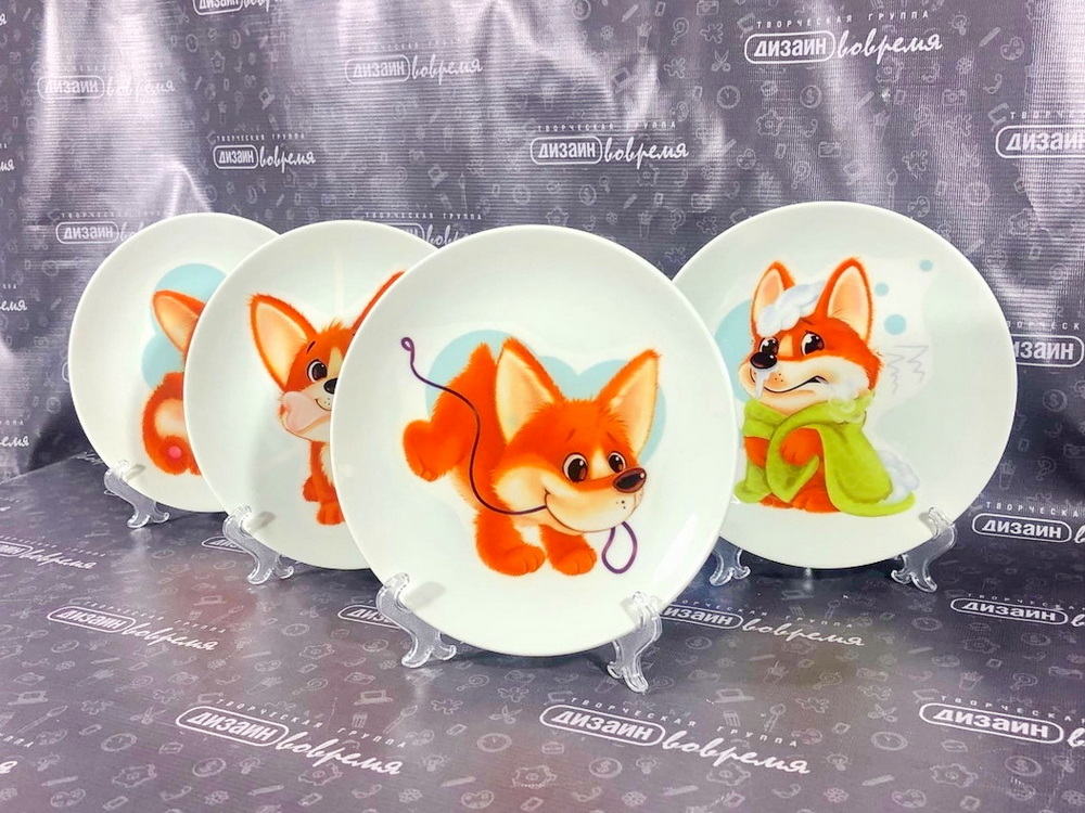 Выполненные в едином стиле тарелка и кружка с печатью могут стать достойным подарком коллеге, деловому партнёру.