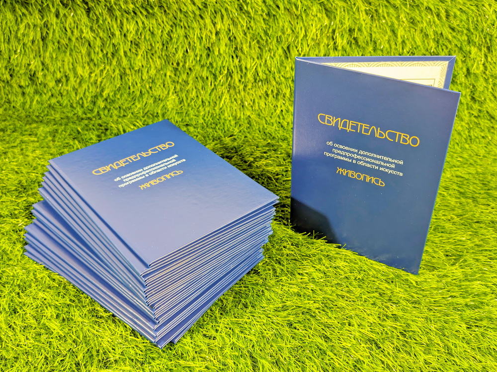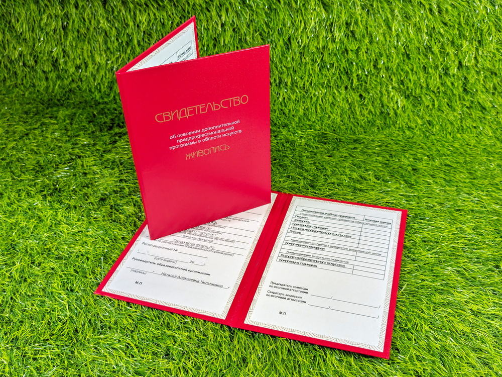 Обложку свидетельств и удостоверений можно оформить в синем, красном или бордовом цвете. Надпись на обложку наносится при помощи УФ-печати или тиснения.